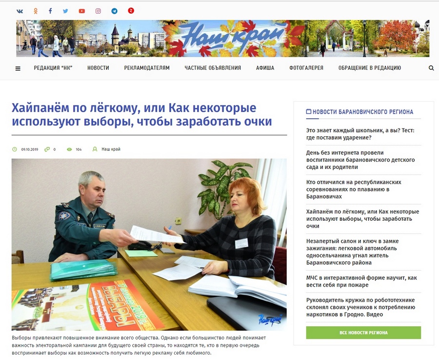 Статья «Хайпанём по лёгкому, или Как некоторые используют выборы, чтобы заработать очки» появилась на сайте «НК» 9 октября. В периоды избирательных кампаний государственное издание традиционно использует пропагандистские методы. Не стали исключением и эти выборы в парламент.