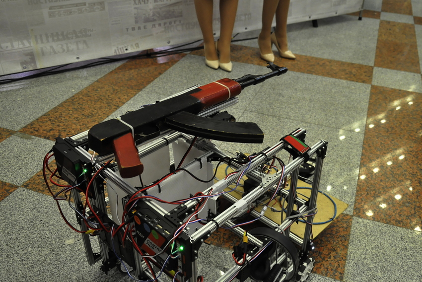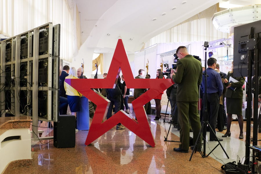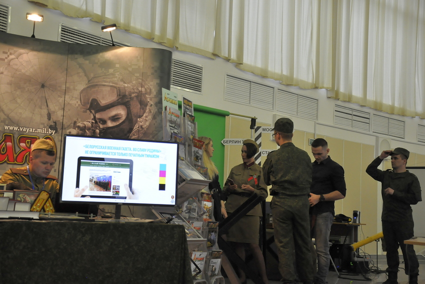 Выставка в этом году посвященная 75-летию освобождения Беларуси от немецко-фашистских захватчиков. Возможно, поэтому она была пронизана темой милитаризма.