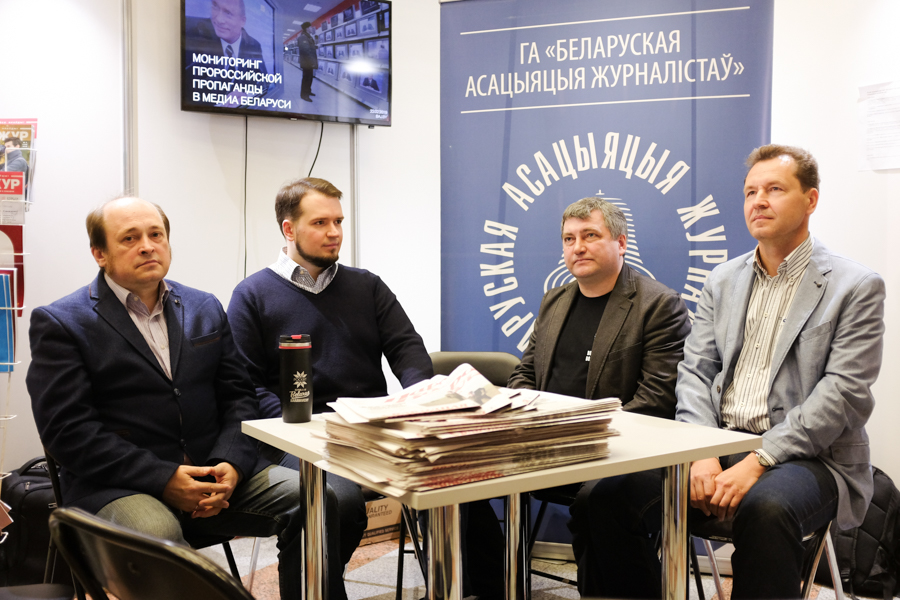 Белорусская ассоциация журналистов провела дискуссию «Информационная безопасность Беларуси в медиасфере». Участвовали Андрей Бастунец — председатель ОО «Белорусская ассоциация журналистов», Вадим Можейко — аналитик BISS, Павлюк Быковский — медиаэксперт, Александр Старикевич — главный редактор издания «Салідарнасць».
