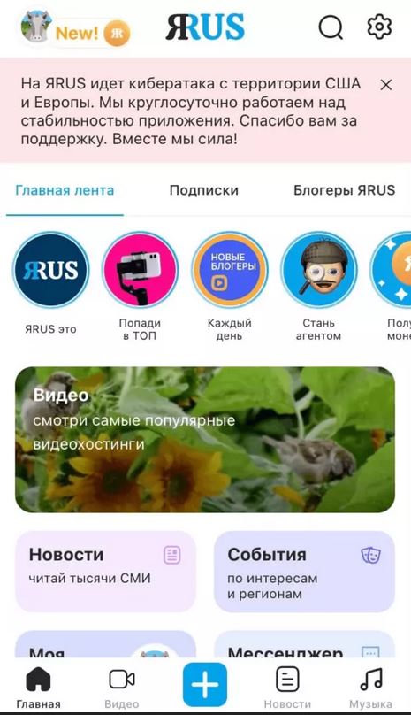 ЯRus собирает видео с девяти хостингов, включая YouTube, RuTube и TED. В разделе «Сюжеты» публикуют короткие вертикальные ролики, напоминающие формат TikTok. Многие видео там — перезаливы из тиктока, но встречается и уникальный для соцсети контент.