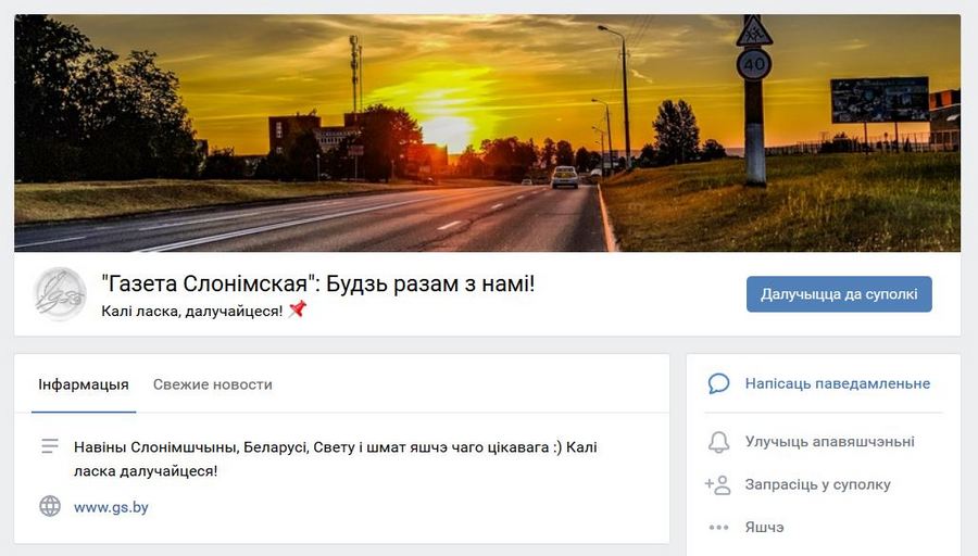 Это паблик местной частной общественно-политической газеты “Газета Слонімская”(сайт gs.by). Поэтому логично, что большинство записей — это ссылки на материалы издания. Ленту разбавляют фотографиями, мемами и репостами записей слонимчан.