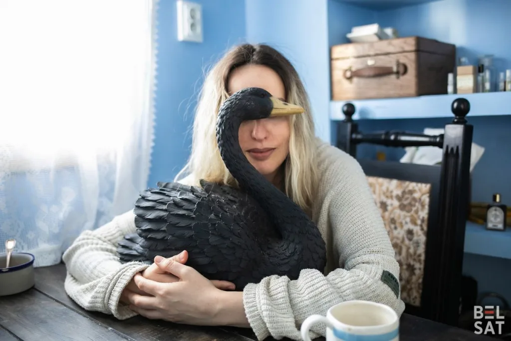 ЮЛ: Да, и мы с ней сидели, наверное, полдня куклы шили, это не вошло в видео. Она куклы шьет. У меня есть, сейчас покажу, подарила мне ляльку. Это для нее как антидепрессант такой – шить куклы. Многие беларусы на антидепрессантах сидят сейчас. А она и эскизы еще рисует, профессионально так. Может, что-то получится из этого. Мультик какой-нибудь.