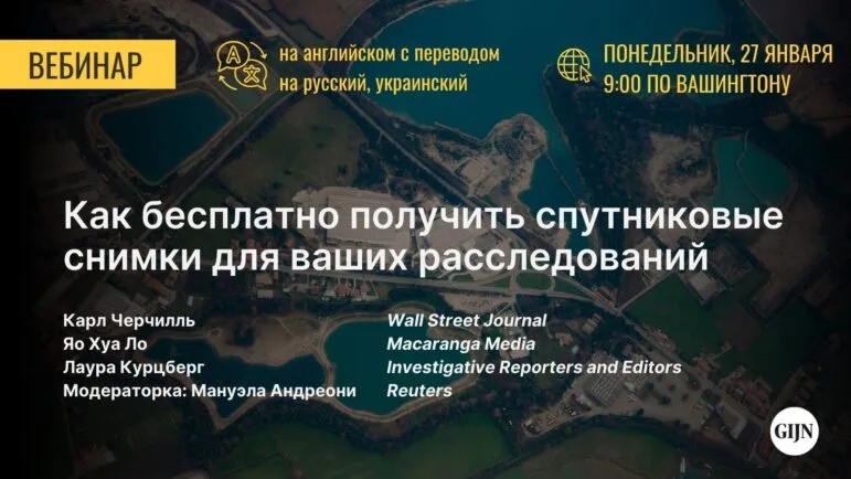 Международная сеть журналистов-расследователей (GIJN) проводит открытый вебинар. Эксперты расскажут о бесплатных ресурсах и поисковых стратегиях, которые помогут журналистам использовать спутниковые снимки для своих материалов.
