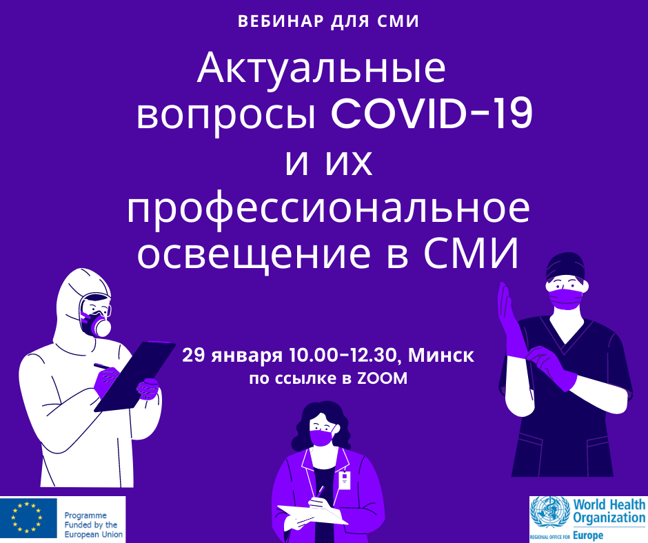 Страновой офис ВОЗ в Беларуси приглашает присоединиться к вебинару «Актуальные вопросы COVID-19 и их профессиональное освещение в СМИ».