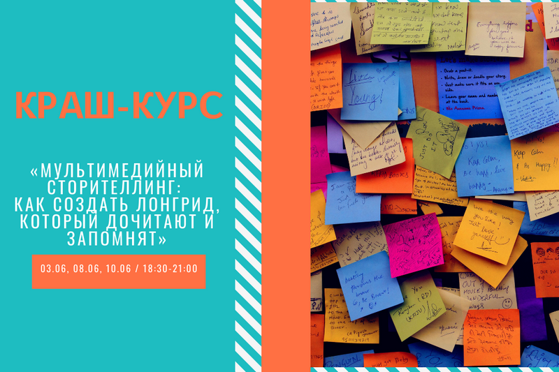Краш-курс «Мультимедийный сторителлинг: как создать лонгрид, который дочитают и запомнят» (регистрация до 31 мая)