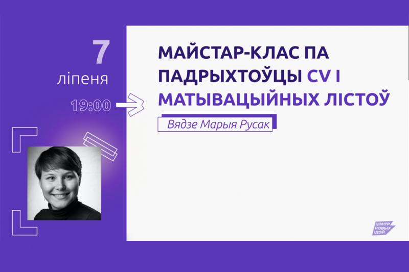 «Мастер-класс по составлению резюме и сопроводительных писем» — это открытый семинар в рамках воркшопа Центра новых идей с Марией Русак, который состоится 7 июля в 19:00.