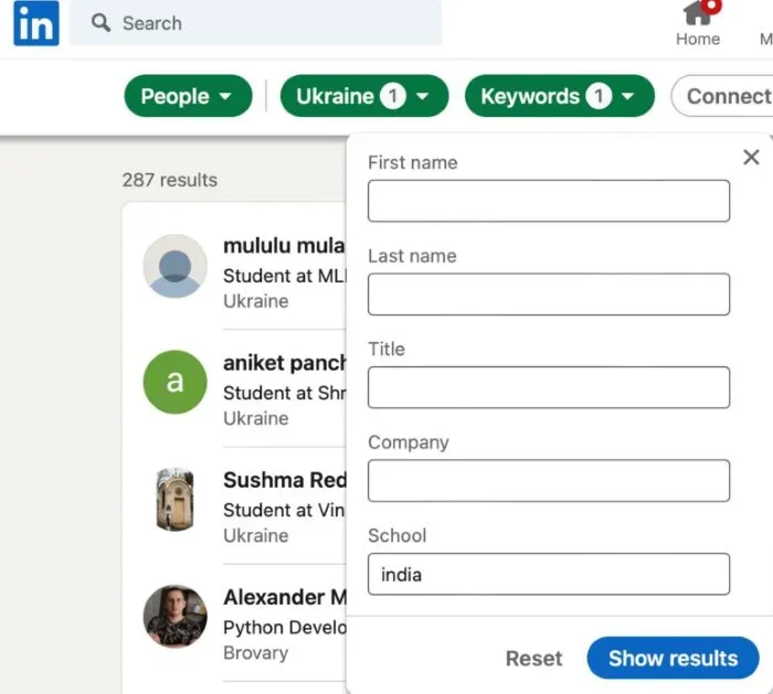 Поиск иностранцев в LinkedIn. Скриншот: Хенк ван Эсс