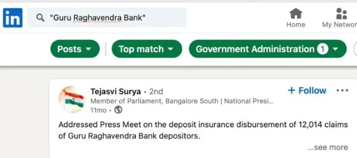 С помощью этой же методики можно определить, кто из членов индийского парламента обсуждал Guru Raghavendra Bank — финансовую организацию, обвиняемую в мошенничестве.