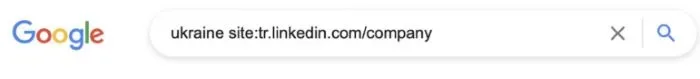Как определить, что компания релоцировала своих сотрудников в другую страну? Давайте найдём турецкую компанию, в которой работают украинцы. Стандартная опция поиска в LinkedIn не всегда может быть полезна для расследований; если вы хотите найти турецкие компании, которые используют слово Ukraine на своих официальных страничках; в этом случае лучше использовать Google. Вот как это делается: введите ключевое слово «Украина» (Ukraine) и сузьте поиск до турецких компаний с помощью оператора «site:tr.linkedin.com/company».