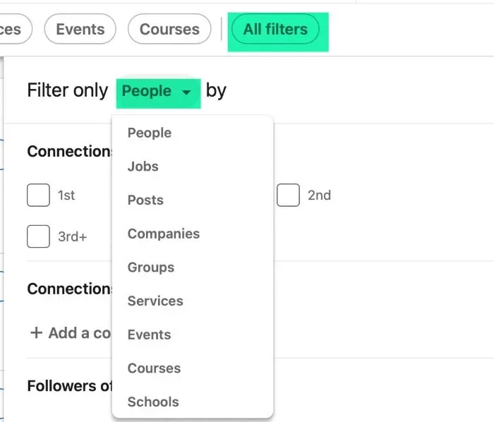 Все фильтры в LinkedIn. Скриншот: Хенк ван Эсс