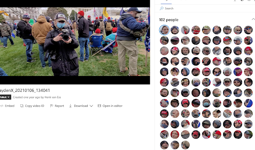 С помощью videoindexer.ai можно было отследить людей, участвовавших в штурме Капитолия США 6 января 2021 года. Изображение: Скриншот