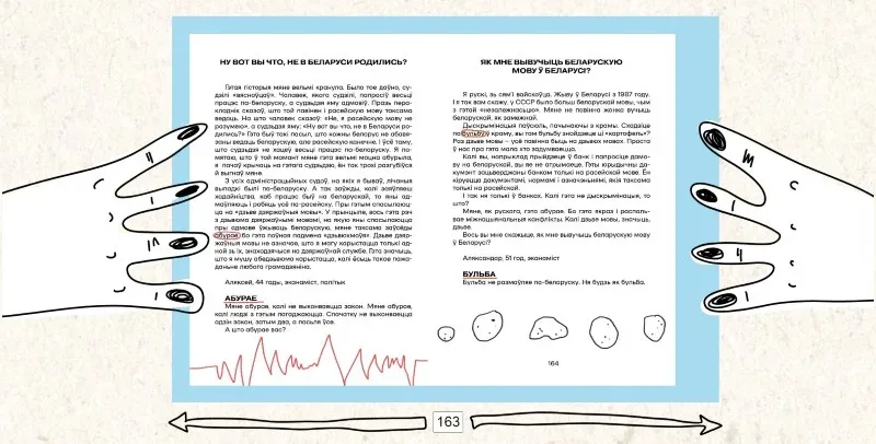 Нагорная писала и издавала книгу, когда еще была в Беларуси. Послевыборные репрессии тогда уже начались, но еще не имели нынешнего масштаба, да и власти Беларуси еще не ввязались в полномасштабную войну в Украине. Изменилась ли за это время языковая ситуация? Алина колеблется: репрессии вроде бы усилились, но под них можно попасть, а можно не попасть, «нет логики».