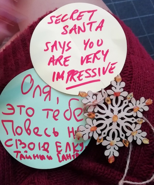 Каждый участник вытянул себе бумажку с именем человека, для которого он становился Сантой. На протяжении всей встречи Санта должен был делать подарки, говорить комплименты, устраивать сюрпризы своему подопечному. Условие: делать это так, чтобы человек не догадался, кто его Санта.