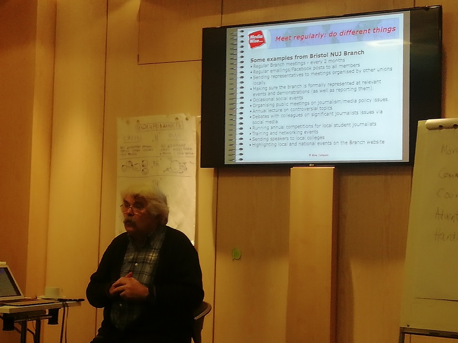На лидерскую сессию в Ригу организаторы пригласили журналиста с 40-летним стажем, профессора университета Западной Англии (г. Бристоль) Майка Джемпсона. Майк возглавляет организацию The Medi­a­Wise Trust, он заместитель председателя Совета по этике Национального Союза журналистов Британии.