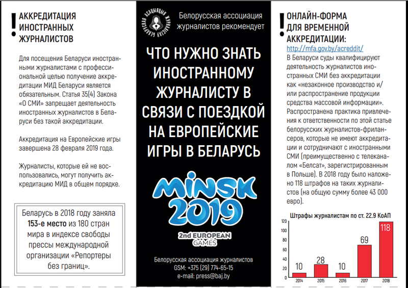 Юристы общественного объединения "Белорусская ассоциация журналистов" подготовили памятку о том, что нужно знать иностранному журналисту в связи с поездкой на II Европейские игры. В ней: