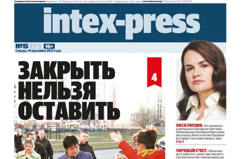 4 мая редакция Intex-press получила письменное предупреждение от Министерства информации. Оно пришло по электронной почте. В документе говорится, что решением суда Барановичского района и г. Барановичи интервью со Светланой Тихановской, опубликованное в газете 14 апреля, признано экстремистским, в связи с чем Мининформ «предупреждает юридическое лицо, на которое возложены функции редакции газеты Intex-press, ООО «Издательский дом «Интекс-пресс», о недопустимости нарушения требований статьи 38 «Закона о СМИ» и сообщает, что «допущенные нарушения необходимо устранить» и уведомить об этом министерство до 14 мая.