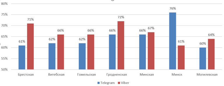 При этом в регионах более популярен  Viber, а в Минске — Telegram.