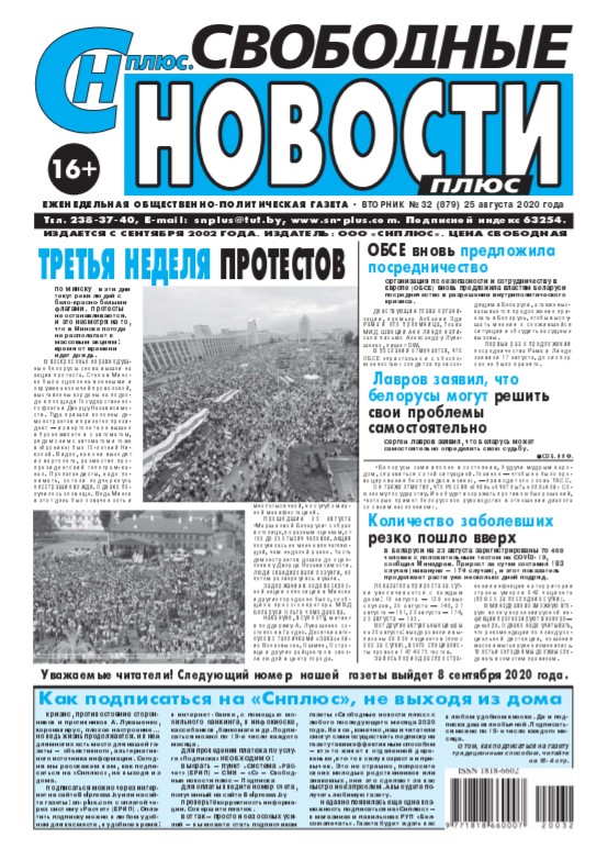 25 августа в номере еженедельной газеты  «СНплюс. Свободные новости плюс». На своем сайте издание опубликовало следующую информацию: «Объяснения точно такие же, как и в ситуации с нашими коллегами из других негосударственных СМИ — поломки автомобилей, проблемы с оборудованием. Ясно одно: информационное поле зачищается, людей пытаются отгородить от правдивого слова».
