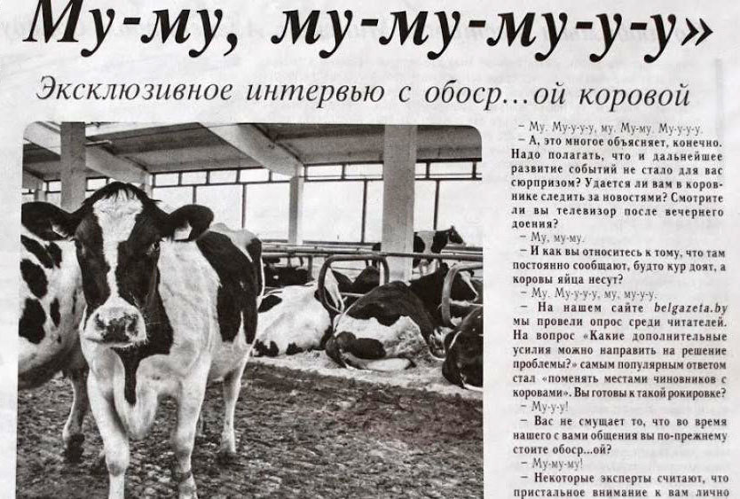 В газетных киосках нет последнего номера «Белгазеты». Номер отозван по рекомендации Министерства информации. В номере были размещены, в том числе, юморески на темы коров.