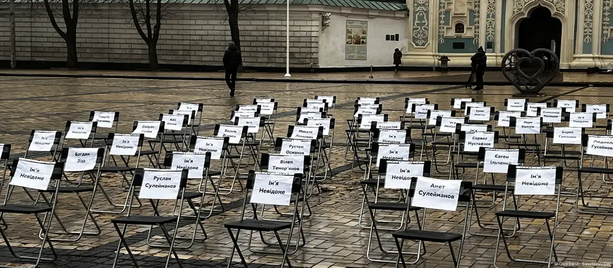 Недавно освобожденные из российского плена крымские журналисты и правозащитники Людмила Гусейнова и заместитель председателя Меджлиса крымскотатарского народа Нариман Джелял сняли свои имена с выставленных на прошлогодней акции стульев. Это должно было символизировать надежду на возвращение тех, кто еще остается в российском плену.