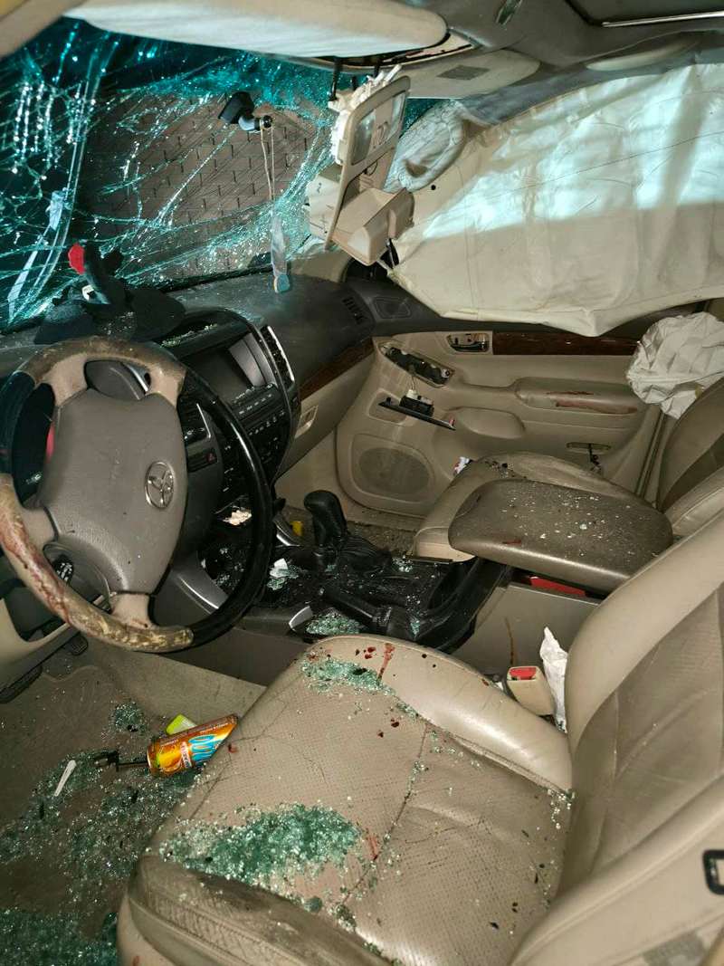 Так выглядит салон автомобиля, в котором в момент ракетного удара находилась журналистка. Фото: Moni­ka Andruszews­ka