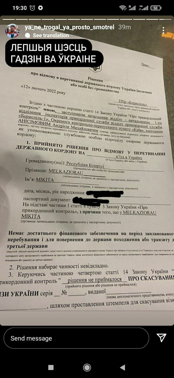 «Со мной было пять беларусов, не прошел никто». Никита Мелкозеров рассказал, как его не пустили в Украину
