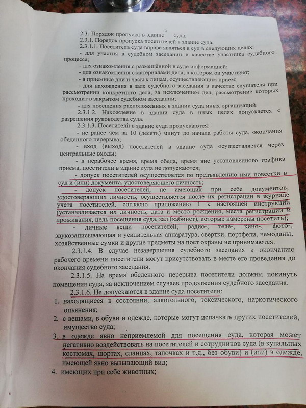 ОО «БАЖ» удалось всё же ознакомиться с копией Инструкции по порядку посещения зданий Минского городского и районных судов г. Минска, утверждённой 22 февраля 2018 года.