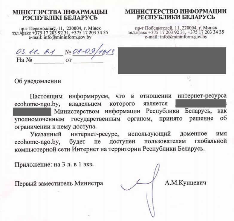 Доступ да сайта ліквідаванага экалагічнага аб'яднання «Экадом» на тэрыторыі Беларусі абмежаваны па рашэнні Міністэрства інфармацыі.