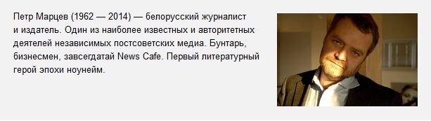 Главред интернет-журнала kyky.org Саша Романова выпускает в свет книгу о жизни известного белорусского бизнесмена и издателя Петра Марцева, основателя газет «БДГ» и «Имя». По жанру книга — детектив, написанный простым разговорным языком, без зауми и философствований, зато с шутками, крепким словцом и огромным количеством диалогов.
