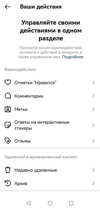 Далее выберите вкладку «Ваши действия». В этом разделе вы найдете список своих комментариев и лайков за все время. Удалить лайк, как и в других соцсетях, можно, еще раз кликнув на него.