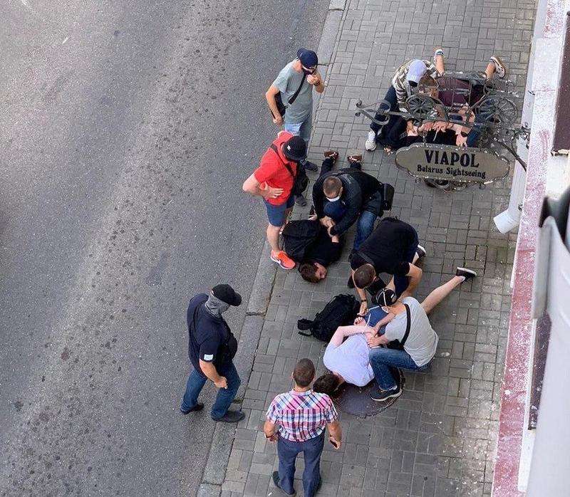 Об этом сообщает телеграм-канал Nexta Live, который опубликовал видео задержания журналистов. На видео видно, как люди в штатском и в масках кладут их на асфальт и увозят в неизвестном направлении.