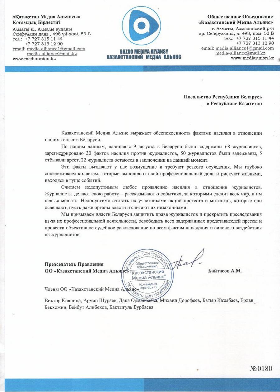 Казахстанский Медиа Альянс выражает обеспокоенность фактами насилия в отношении наших коллег в Беларуси.