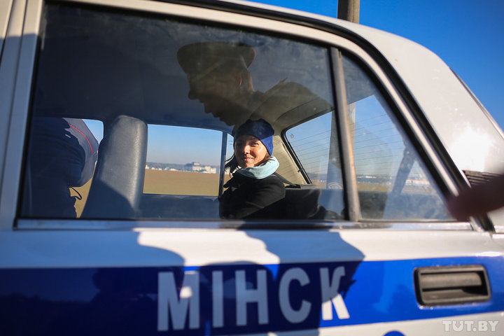 — Меня задерживают за то, что вчера я тут делала сюжет о Куропатах, — успела сообщить журналистка. Ее увезли в Боровлянское РУВД.